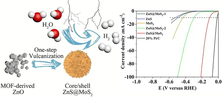 Image credit: UnsplashThe development of low-cost and high active electrocatalysts for hydrogen evolution reaction (HER) is essential for the sustainable energy and environment. Here we report a hydrothermal method to prepare ZnS@MoS2 nanosheets with hydrangea-like superstructure for enhanced HER. Benefiting from their abundant edge sites and facilitated charge transfer, the ZnS@MoS2 exhibited excellent HER performance with low overpotential of 106 mV and small Tafel slope of 73 mV dec−1. In addition, the chronoamperometry measurement results suggested the well-remained current density for 36 h without significant change, which indicated the excellent stability of ZnS@MoS2 superstructure. This work not only provides an effective method for constructing hierarchical heterojunctions, but also gives us a multi-scale strategy for the regulation of metal-based nanomaterials’ structure in energy-related applications.
